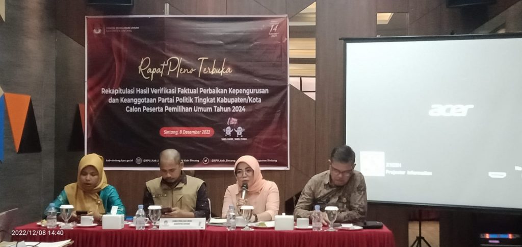 Hasil Verifikasi Perbaikan Ke-Enam Partai dinyatakan MS (Memenuhi Syarat), untuk tingkat Kabupaten Sintang setelah Pembacaan hasil Rapat Diskor selama 30 menit,